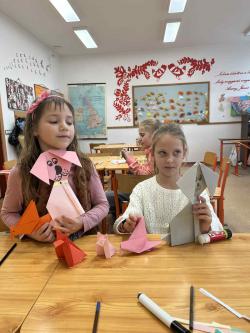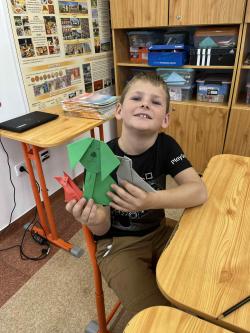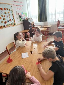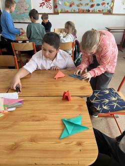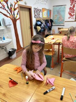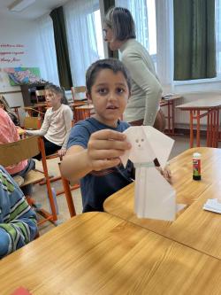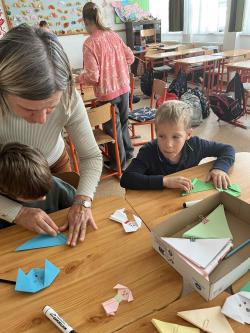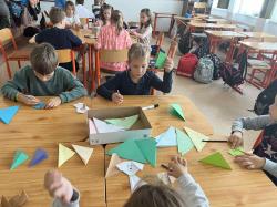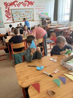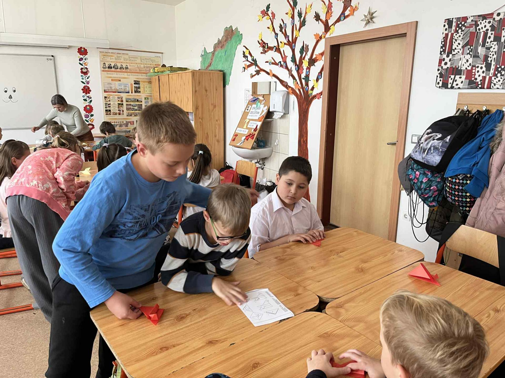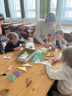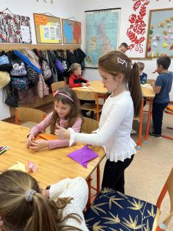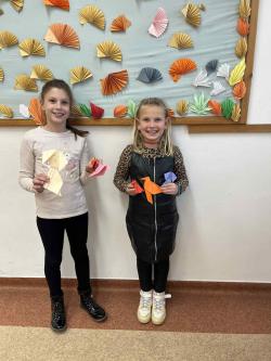 Némethné Simon Klára, Klári néni origami foglalkozásra invitálta iskolánk alsó tagozatos diákjait, a papírhajtogatásban az ötödik osztályosok voltak a kicsik segítségére. Galériánkban láthatók az ügyes kezecskék által elkészített produktumok.
