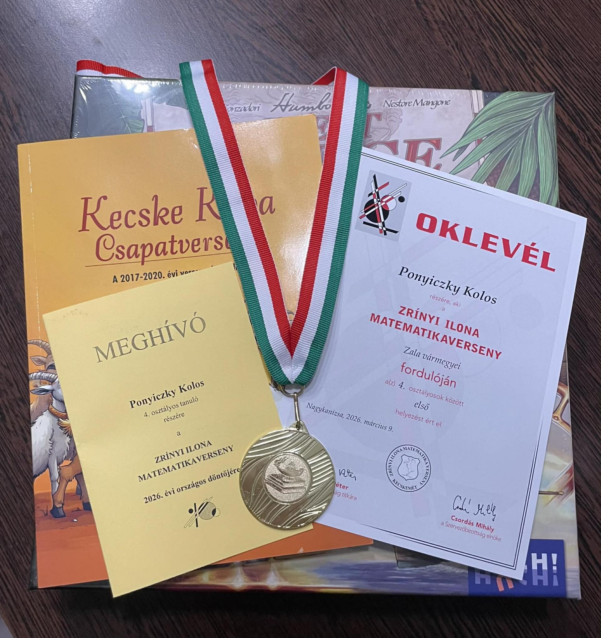 Óriási öröm és büszkeség számunkra, hogy iskolánk 4. osztályos tanulója, Ponyiczky Kolos ismét Zala vármegye legjobb negyedikes matekosa lett. Kolos Magyarország egyik legnívósabb matematikaversenyén, a Zrínyi Ilona Matematikaversenyen mutatta meg tudását és tehetségét. A vármegye legjobbjaként képviselheti a Becsehelyi Schmidt Egon Általános Iskolát és Zala vármegyét a Kecskeméten megrendezésre kerülő országos döntőben. Külön érdekesség, hogy kiváló matekosunk nem először szerepel kimagaslóan a versenyen, 2024-ben szintén a vármegye legjobb eredményét érte el.